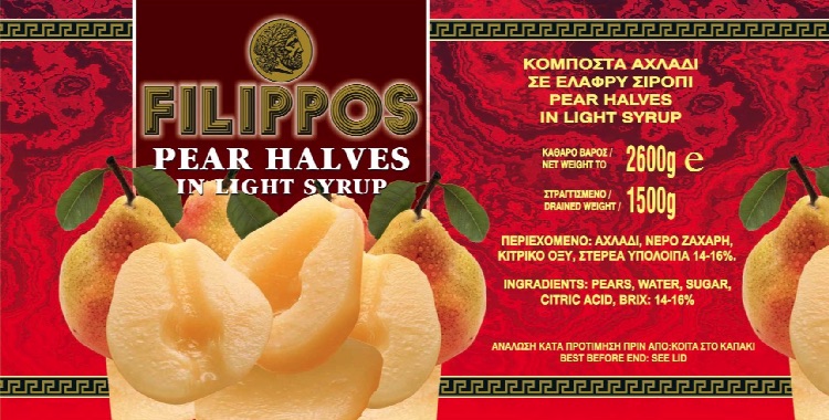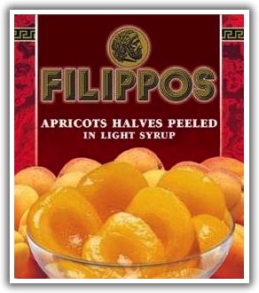 Greek Canned Peaches in light syrup and other canned fruits.